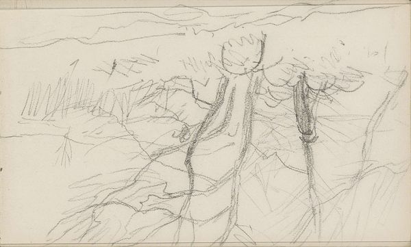 Anton Mauve created this drawing, "Landschap," which translates to "landscape," and is now held at the Rijksmuseum. The drawing is a study in contrasts, utilizing a stark palette of black lines on a white background to evoke the natural world. Note the artist’s emphasis on line and form. The composition is defined by an interplay of short, energetic strokes and longer, flowing lines, which create the impression of movement. The overall effect is one of abstraction, where recognizable forms dissolve into a network of marks. This approach challenges traditional landscape art. Mauve invites us to question how meaning is constructed through minimal means. By stripping away color and detail, he focuses on the underlying structure of the landscape, revealing the essence of form and space. This drawing isn't just a representation of nature, it's an exploration of the fundamental elements of visual language.