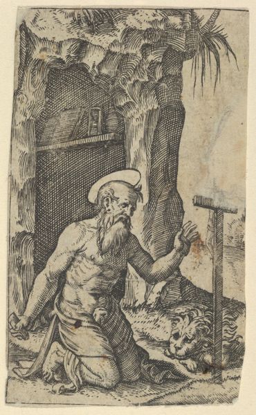 Annibale Carracci made this print of Saint Jerome, we think, sometime in the late 16th century. It’s an etching, meaning that the image was created by drawing into a wax-covered metal plate, then bathing it in acid. The acid bites into the metal where the wax has been removed, creating recessed lines, which then hold ink. The whole plate is wiped clean, and then printed under great pressure. What's fascinating here is that we can read the image as an appreciation of skilled labor. Jerome, translating the Bible, is literally working with his hands, poring over the text with the aid of crafted lenses. And Carracci is doing the same, in a parallel act of interpretation. The quality of the etching is also worth noting. Carracci coaxes a full range of tones from a very simple process. He proves that even the most ostensibly reproducible media can achieve great subtlety, even virtuosity.