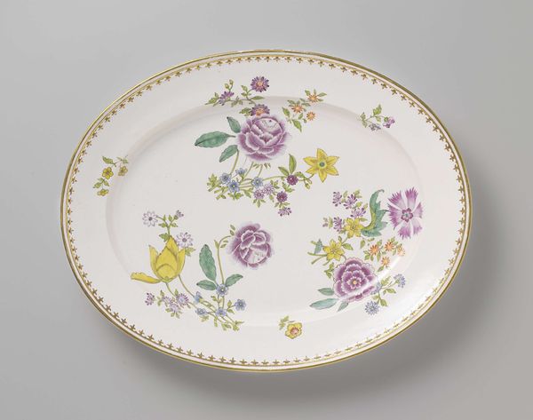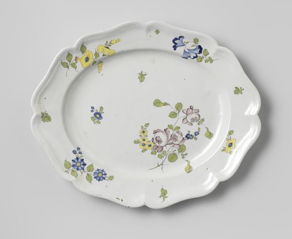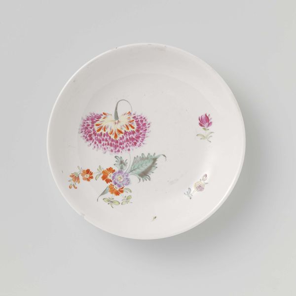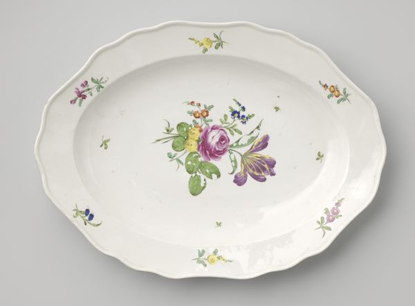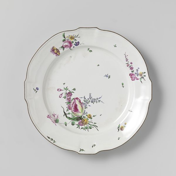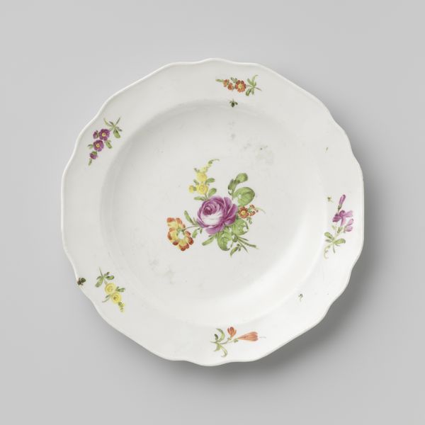 This plate was made by the Veuve Perrin Factory, using a refined white clay known as porcelain, and decorated with colorful overglaze enamels. What’s interesting here is the way that a factory setting – with its division of labor – could create something so delicate and visually complex. It begins with the refinement of raw clay, molded to this elegant, scalloped form. After an initial firing, the plate would have been passed to skilled painters. They layered the enamel pigments to create a vibrant bouquet. This particular arrangement of flowers is known as 'au panier fleuri'—literally, 'with a basket of flowers'—popular at the time. But it is a fantasy. The combination of blooms could never occur in nature. The plate represents a moment in history when the natural world, commodified as ornament, entered the domestic sphere, thanks to factory production. So, next time you set the table, think of the many hands that brought beauty into being, challenging our notions of art, craft, and industry.