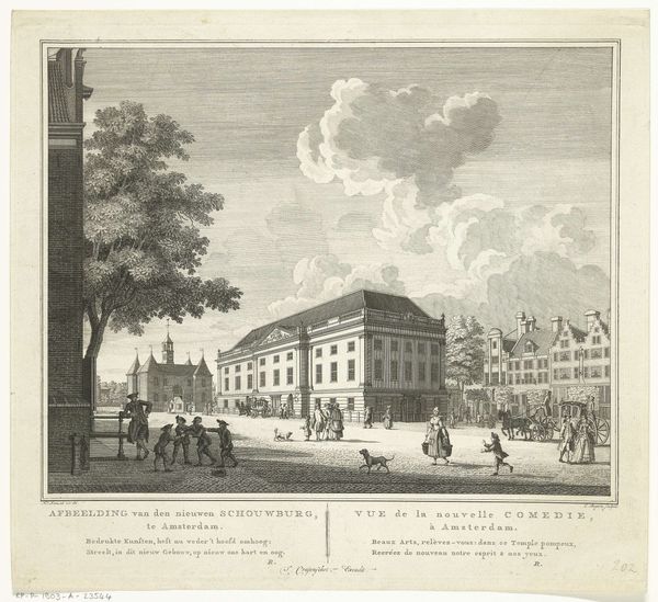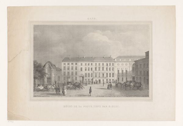 This anonymous drawing depicts the "First Conquest in Antwerp" in 1830, rendered in ink on paper. The formal structure divides the scene into thirds: the architecture dominates the upper plane, the figures populate the mid-ground and the inscription anchors the foreground. The buildings' classical facades are methodically outlined, creating a rhythmic pattern of windows and arches, which suggest order. This contrasts with the more haphazard arrangement of the figures on the square, hinting at the social upheaval of the time. The artist's deployment of line and form can be interpreted through the lens of structuralism. The orderly architectural elements signify the established order while the dynamic groups of people represent forces challenging this order. The drawing captures a moment of transition, and the empty space in the center serves as a visual signifier, opening the artwork to multiple interpretations.