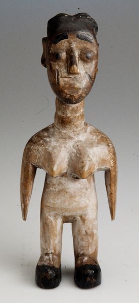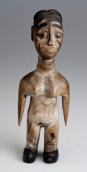 Editor: So, here we have "Standing female figure" from the Colima culture, dating roughly from 201 to 600 AD. It's made of earthenware and it's currently held at the Minneapolis Institute of Art. It's...earthy, literally. It also has a certain...solemnity about it. I'm really intrigued by her facial features and wondering how this ceramic artwork might have been used. What catches your eye most about this piece? Curator: That earthy quality speaks volumes, doesn't it? For me, I'm instantly transported. I imagine the hands that molded this figure from clay, feeling the same earth, the same sun. And those curious facial features – that prominent nose! It’s almost bird-like. This, coupled with the pronounced shoulders reminds me of power. There’s a strength and resilience here. It may have been part of a funerary offering, connecting with cycles of life and death. I almost wonder, does the boldness make you consider that the statue is not "solemn," but rather commanding in person? Editor: I hadn't thought of it as commanding. But the bird-like imagery you point out...makes me wonder if this figure maybe had a religious significance? Curator: Exactly! This isn’t just decoration; it's about beliefs and ways of life, a celebration of the female form and its life-giving power. Perhaps she was a deity. Also, note her proportions. They aren't concerned with the kind of realism we see in later Western art. What effect does that have? Editor: That's true. It feels...almost abstract? Definitely more focused on symbolic meaning rather than pure representation. I get a stronger sense of ritual from this now than before. Curator: I completely agree! Looking at this work as less representational, but rather focused on ritual and life cycles truly captures the brilliance of Indigenous American artists. It speaks to how objects can function on multiple levels; not just art, but also history, anthropology, and lived experience. I am reminded of life. Editor: Yeah, I feel like I've uncovered a hidden story, beneath the surface of the clay. Thank you.