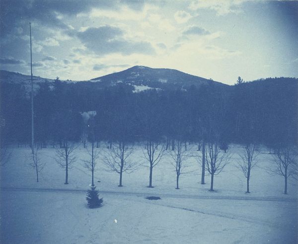This cyanotype by Charlotte M. Endicott captures a snow-laden landscape, dominated by the Doublehead Mountain. The stark, monochromatic rendering strips the scene to its bare essence. The mountain, a motif recurring throughout art history, from ancient Chinese Shanshui paintings to the Romantic landscapes of Caspar David Friedrich, often symbolizes the sublime power of nature. It speaks to mankind's enduring quest for transcendence. Here, the snow evokes purity, silence, and the overwhelming force of winter, a cyclical motif of death and rebirth. The bare trees in the foreground, like skeletal fingers reaching towards the sky, echo the "arbor vitae," or tree of life, a symbol stretching back to ancient Near Eastern art. This symbol represents growth, decay, and the cyclical nature of existence. Perhaps, Endicott unconsciously tapped into this collective memory, using the landscape to convey a sense of both isolation and the enduring spirit of life amidst the harshness of winter. The psychological impact is profound, drawing us into a world of stark beauty and reflective contemplation.