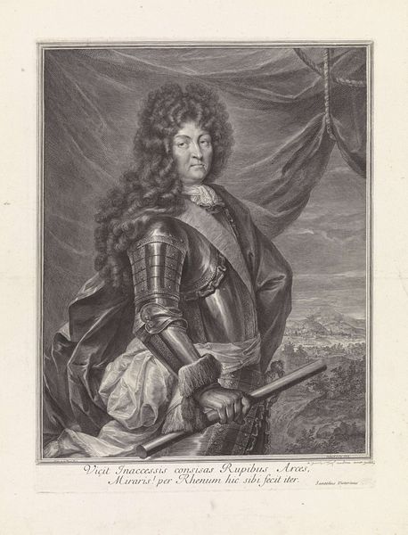 This is a print of Maximilian Emanuel II, made by Pieter Schenk. Observe the baton he holds, a scepter of leadership, a direct echo of antiquity. Recall the Roman emperors with their staffs, symbols of command and imperial authority, that became the symbols of medieval kings, emblems of the power bestowed by divine right. The baton isn't merely a functional object; it’s a loaded signifier, its reappearance in art across centuries speaks to a deep-seated human need for authority and order. Note the theatricality of the wig and armor, gestures of an almost operatic performance of power. The collective memory of leadership, both revered and scrutinized, is condensed in these visual symbols. This emblem of power, then, isn't static. It cycles through history, sometimes a blunt instrument of force, other times a refined symbol of cultural identity. It's a motif that returns, transformed yet recognizable, engaging us in an ongoing dialogue with the past.
