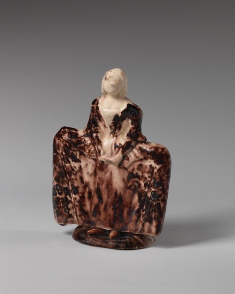 This paperweight was made by Lyman, Fenton & Co. in the late 19th century, crafted from glazed earthenware. This wasn't high art, but rather a product of the booming ceramics industry, designed for everyday use. The glaze is key here. It's a classic example of "Rockingham" or "Bennington" glaze, known for its mottled brown effect. This was achieved by combining different metallic oxides in the glaze mixture, which then separated during firing, creating a unique, almost marbled appearance. The form, a reclining dog on a cushion, was likely slip-cast in a mold, demonstrating the industrialized processes of the time. It reflects how manufacturers sought to add decorative appeal to functional items, capitalizing on the Victorian era's love of ornamentation and novelty. This paperweight speaks to the democratizing influence of industrial production, bringing artful design into the homes and lives of ordinary people, while also illustrating the skilled labor and ceramic techniques involved in its creation.