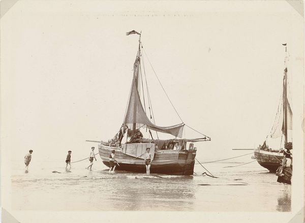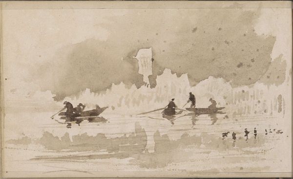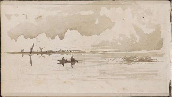 Albertus van Beest made this river view with fishing boat in the mid-19th century, a period of significant socio-economic change in the Netherlands. Van Beest, working in a time when industrialization began to challenge traditional ways of life, captures a serene moment of Dutch maritime culture. The soft sepia tones evoke a sense of nostalgia, perhaps reflecting a longing for a simpler, pre-industrial past. The image foregrounds the figure of a fisherman, a subject whose identity and labor were deeply intertwined with the rhythms of nature. It is interesting to consider how the rise of industrial capitalism impacted those whose livelihoods depended on natural resources. How might the fisherman in this drawing have experienced the changing economic landscape? Did this image serve as a celebration of the working class, or as an elegy for a way of life that was slowly disappearing? As you look at the drawing, consider it as an intimate glimpse into a specific moment in history, one where identity, labor, and the environment were inextricably linked.