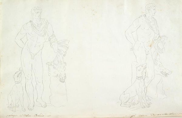 Curator: This drawing at the Harvard Art Museums, titled "Vatican Celestial Venus and Vatican Bathing Venus," presents two studies of classical sculptures. Editor: It looks as though the artist attempted to capture light itself, with such fine, faint pencil strokes. Curator: Indeed! What interests me is the apparent simplicity, the almost academic approach to depicting these figures, yet also the undeniable sensuality that shines through. It makes you wonder about the artist’s gaze and how they perceived these iconic forms. Editor: Right, and it's fascinating how these drawings— likely exercises—still carry the weight of classical ideals, filtered through the hand and eye of an anonymous maker. The material itself, paper and pencil, becomes a conduit for transmitting these cultural values across time. Curator: Absolutely. These Venuses, born from marble, reborn in graphite, offer a quiet meditation on beauty, form, and the enduring power of art to transform us. Editor: Ultimately, they are a testament to the way artistic labor can imbue even the simplest materials with profound significance.