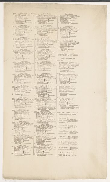Curator: Looking at this print, "Krant met een stamboom van het Huis Nassau," dating probably from 1923 to 1928 and held here at the Rijksmuseum, it strikes me as both information and…well, let's just say dense. What's your initial take? Editor: My first thought is information overload. It's incredibly detailed. I feel a little lost just looking at all that tiny text. Is it meant to be understood at a glance, or is it more of a document to be studied? Curator: Definitely a document to be studied. It’s literally a family tree of the Dutch Royal House of Nassau presented in a newspaper format. Think about how public the private lives of Royals have always been, this object visually articulates these intertwined historical forces. Genealogy, legacy, and media all rolled into one print. Editor: I see what you mean about the publicity element. Putting a royal lineage in a newspaper makes it accessible. The choice of newspaper form is an interesting choice. I suppose it was aiming to legitimize the monarchy? To showcase its deep historical roots in a very public way. Did it feel more "official" being in the format people read every day for their news? Curator: Exactly! By placing it in the "De Telegraaf," it insinuates this history is also the stuff of daily relevance. The design with its formal typeface also mimics established historical displays—visually merging past legitimacy with present authority. Editor: It’s so intricate. I almost wonder about the choice of materials. It has a sense of both permanence and disposability because of the graphic-art medium, if that makes sense. What would possessing this object have represented? Was it collected, like a souvenir? Curator: Perhaps. Consider the socio-political context. This was a period of rebuilding after WWI, when ideas of national identity were powerful. Owning this print, displaying it even, could signify an allegiance or belonging—a literal investment in the Dutch royal story during times of societal shifts. Editor: It certainly gives you a lot to think about regarding the ways that we present and consume images of power. There are echoes to this day of trying to tie tradition to contemporary society. Curator: Precisely. It’s a complex piece. A seemingly simple family tree really opens a whole world of political communication in the early 20th century. It does feel kind of important to understand our cultural history and the subtle propaganda of how a monarchial power remains relevant over generations.