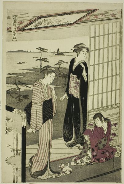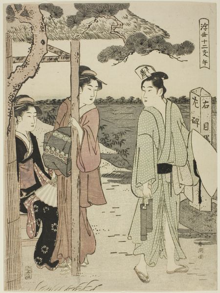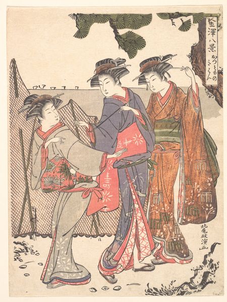 Katsukawa Shunchō created "Cherry Blossoms in Spring" as a woodblock print, now residing at the Art Institute of Chicago. The print presents three figures, likely courtesans, beneath blossoming cherry trees. The composition is carefully structured. Notice how the vertical lines of the figures' robes contrast with the soft, diffuse blossoms. Shunchō masterfully uses line and form to create a delicate balance between the natural world and human presence. The patterns on the kimonos, rendered with meticulous detail, add layers of visual complexity, inviting close inspection. This visual harmony is deeply embedded in the cultural context of Edo-period Japan. Blossoms are not mere decoration; they are symbols of transience, beauty and the fleeting nature of life. Shunchō uses form and composition to connect his figures with these ideas, subtly weaving philosophical notions into the artwork. Consider the way Shunchō destabilizes the relationship between foreground and background. By emphasizing surface patterns and textures, the artist blurs the lines between the figures and their environment. It is through such formal gestures that Shunchō encourages a deeper reflection on our understanding of art, nature and the human experience.