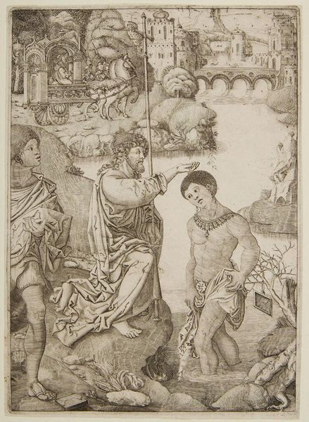 Editor: This is an anonymous piece, "Christ Descending into Limbo," currently residing at the Harvard Art Museums. It’s a striking image, quite graphic. What do you see in this piece that I might be missing? Curator: I see a potent visual argument about power dynamics and liberation. Christ's descent isn't just a religious event, but a symbolic disruption of the established order, a defiant act against the forces that hold people captive. Consider the grotesque figures of hell beneath his feet, and the implications of him liberating Adam and Eve. Editor: So, it is about challenging power structures. Curator: Precisely. How does this image speak to contemporary issues of social justice, of challenging oppressive systems? Who are the figures in our society that need liberating? What does descending into the "limbo" of our own social ills entail? Editor: It reframes the whole narrative in a new, more socially relevant context. Thanks! Curator: Indeed, art calls us to consider perspectives of society and culture.