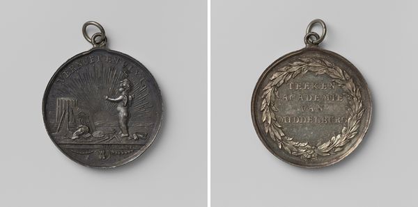 Curator: This medal, “Ereteken voor de honoraire leden van de schutterij Sint Joris te Dordrecht 1784," by Johannes Josephus van Baerll, seems so detailed, but at the same time, very subtle in its relief. It's crafted from metal. How would you interpret this work? Editor: I’m struck by how the material speaks to power and status. Metal, especially what looks like silver, isn’t just functional, it's inherently valuable. This medal seems to commemorate membership within a shooting guild. Given this was created in 1784, during the Dutch Republic, what might the materials and the medal-making process reveal about class structures at the time? Curator: Precisely! The choice of metal, the skill required to create the relief, all point to specialized labor. These guilds weren't just social clubs, they were deeply embedded in the political and economic landscape. The medal acted as a tangible symbol of their role in upholding civic order, demonstrating visible allegiances and material wealth. Editor: So the metal itself signifies exclusivity. But the craftsmanship – the relief – that also represents labor. How accessible were these skills, and how might they affect our understanding? Curator: Excellent question. Craft guilds controlled access to training and resources, solidifying hierarchies. Producing these medals wasn't a solo act; it required skilled artisans and access to specific technologies, things that reinforced the social order. We have to wonder about those who were excluded from this process and those specific trades. Editor: Thinking about the economic systems needed to create such items – the mining, refining, and craftsmanship…it gives the object an entire background narrative beyond the event it memorializes. Curator: Absolutely. It reveals the web of labor, materials, and social structures that defined that time. A powerful example of how something small like a medal can point to larger societal conditions. Editor: So next time I see a Baroque medal, I won't just focus on the imagery. I’ll remember to ask myself: What hands shaped this object, and what does it tell us about them?