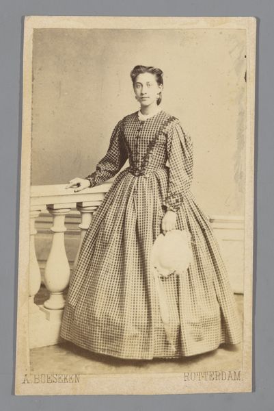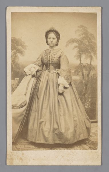 Marcello Tommasi made this photograph of an unknown woman, likely in Italy, using the then newly-developed medium of carte-de-visite. Photography democratized portraiture, making it accessible to a wider segment of society beyond the elite. The woman's attire and accessories tell us about the social expectations and gender roles of the time. She is wearing an elaborate dress, which signifies a certain level of social standing and wealth, though it is not as opulent as upper class garments. Her stern expression speaks to the perceived dignity and moral propriety expected of women in public life. The umbrella suggests the need to protect oneself from the elements, but also represents the controlled environment in which a woman was expected to live. As historians, we can delve into the cultural norms and institutional frameworks of the time by consulting photographs, conduct books, etiquette manuals, and fashion plates. These sources can reveal the nuanced ways in which photography was used to construct and reinforce social identities.