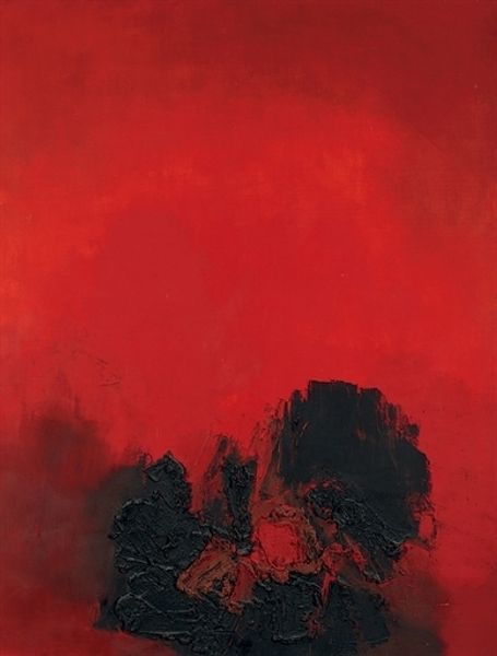 Darren Waterston made Constructing Paradise no. 3 with paint, and perhaps other media, in a way that feels like an experiment. The palette is like an antique photograph, muted greens and reds that evoke a memory of a landscape rather than the thing itself. There’s a real push and pull in the materiality, between the washes of translucent color and the drips which sit on the surface. I’m drawn to the way the red seems to bleed, like a wound or an infection, hinting that paradise is not so easily won. The whole thing reminds me of Albert Pinkham Ryder’s landscapes, dreamy and melancholic, more felt than seen. This piece exists in that ambiguous space, inviting us to wander through its layers of meaning and feeling, a place where beauty and unease coexist.