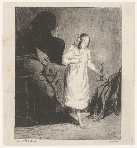 Editor: This is Henri Koetser's "Naaistertje," a charcoal and pencil drawing on paper, made sometime between 1894 and 1934. I find it quite melancholic. The woman seems isolated in her domestic task. What’s your take on this piece? Curator: The drawing certainly evokes a sense of introspection, but let’s dig a bit deeper. Consider the historical context: Late 19th and early 20th century Europe, with its rigid gender roles and the industrial revolution slowly pulling women out of domesticity. This "seamstress," caught between worlds, highlights the tension. Does viewing it through that lens shift your interpretation? Editor: That's a great point. It wasn't just a domestic scene; it's a visual representation of women's changing roles. I wonder, what does the window signify? Is it about freedom, confinement, or perhaps something else? Curator: Exactly! Windows are almost always a symbol for either entrapment or opportunity, or perhaps a potent combination of both. Given what we discussed about the changing societal position of women at this historical moment, ask yourself where you find yourself leaning? Also, the light from the window illuminates the seamstress but also casts strong shadows. What effect might that be having? Editor: Right, it emphasizes both her presence and the limitations of her space. It definitely feels less simply melancholic and more like a commentary on the societal pressures she would have faced. Curator: Precisely. It makes you question the social structures that defined women's lives and labor, doesn’t it? Art allows us to reflect on history while engaging with contemporary issues of gender, identity, and the value of labor. Editor: I now view "Naaistertje" as a portrait of women’s quiet resilience amid societal transformation. I missed the social and historical undercurrents initially. Curator: That's the power of art, to spark such crucial awareness! We’ve both grown because of our encounter with Koetser's work today.