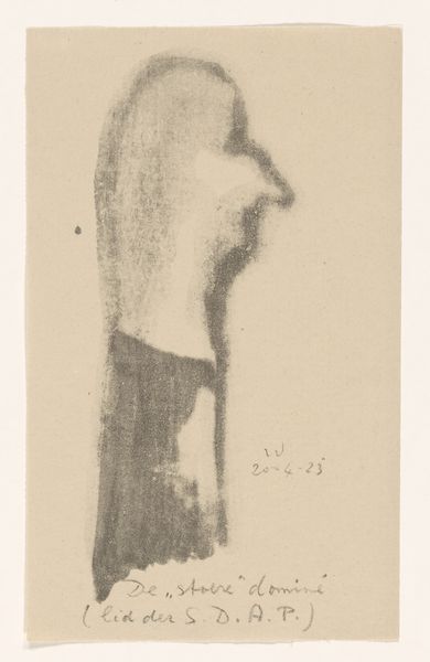 Erich Wichmann made this drawing, titled "De 'leraar'", in 1923, using graphite on paper. The tones are soft, like a memory fading at the edges. It’s an image that feels almost like a rubbing, a kind of frottage where the surface of the paper has picked up the texture of something unseen. This is drawing as a process, not just about making a picture but about feeling something out, like trying to find a form in the dark. Look at the area around the eye. It’s not really an eye, more of a suggestion, a dark smudge with a lighter circle within it, but it carries so much of the image's weight. Wichmann is reminding us that art isn't always about precision. Sometimes, it’s about the ghost of a feeling, the echo of an idea. This drawing reminds me a little of Odilon Redon's symbolist works; they both use a limited palette to create these incredibly evocative, dreamlike images. It’s a reminder that art is always a conversation, a back-and-forth across time and between artists.