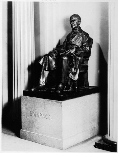 Curator: Here we have a bronze sculpture, completed in 1879 by Louis Hasselriis. It’s titled "Forfatteren Søren Kierkegaard siddende i en stol, læsende i en bog" which translates to “The Author Søren Kierkegaard Sitting in a Chair, Reading a Book.” Editor: That's quite a title! Immediately, the downward gaze captures me. You can feel the weight of thought in his posture, the burden of existential contemplation, perhaps. Curator: Indeed. Hasselriis sculpted this nearly 25 years after Kierkegaard’s death. Think about how Denmark, still grappling with his controversial ideas, might receive such a public memorialization. Editor: Memorialization yes, but this Kierkegaard looks far from celebrated! The subdued tones of the bronze and his solemn posture tell a story of intense internal dialogue rather than public triumph. The detail on the face…it’s beautiful, though tinged with a bit of melancholy. Curator: And the context! The sculpture enters public space as Denmark is establishing its national identity, its philosophical and cultural heritage. A figure like Kierkegaard, so critical of societal norms, presented a challenge. It had to simultaneously acknowledge him and neutralize any potential unrest his radical thought could provoke. Editor: Neutralize! Is that why the artist chose to depict him engrossed in his work, self-contained, even a bit slumped in the chair? It suggests a world existing solely inside his mind, safely tucked away. Still, I sense something revolutionary here; maybe it’s just how his intense presence leaps across time. Curator: It reflects the struggle inherent in monuments then: public memory vs. individual radicalism. It seems to say "We acknowledge this giant, now let him be." By depicting him in quiet contemplation, his potential for disruption gets softened, even mythologized. Editor: So, less rebel and more relic? Still, it's thought-provoking to be near a monument so laden with conflicting meanings, still sparking with energy, frozen but present, writing…and here we are, centuries later, wondering what’s on that page. Curator: Hasselriis certainly captured the spirit of internal reflection that defined Kierkegaard’s life and legacy—a tension that perhaps makes the work more potent and thought-provoking today. Editor: Absolutely, and now I have a new philosopher to look into! That's art doing its magic right there!