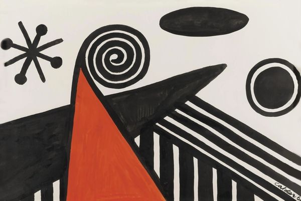 Alexander Calder created "Three Chiefs" with ink on paper, using simple materials to explore form and representation. The choice of ink is crucial here. Its fluidity allowed Calder to create bold, graphic shapes and lines, defining the contours of the three figures with stark contrast. This directness, this lack of fussiness, is key to the work's impact. The process is straightforward, and the impact is immediate. The deliberate use of negative space also plays a role. The white paper becomes just as important as the black ink, shaping the figures and defining their relationships to each other. Calder was working against the grain of academic painting. His works challenge our assumptions about what art should be, inviting us to appreciate the beauty and power of simple materials, direct processes, and playful abstraction.