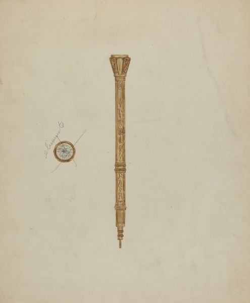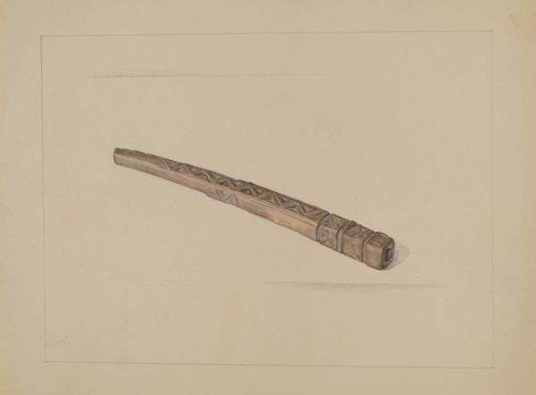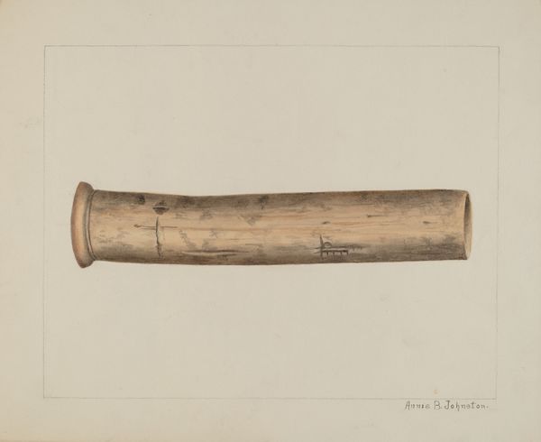 Augustine Haugland made this drawing of a rolling pin, and, you know, it’s just lovely, the way it’s rendered with delicate strokes in shades of brown. It reminds me that art can be found in the everyday, it elevates the mundane. The color is soft and warm. The rendering of the rolling pin shows great attention to detail. You can see the artist building up tone with these tiny, almost imperceptible marks. It's not just a representation; it's an exploration of form and texture, light and shadow. I am drawn to the way the light seems to catch the curves. It’s so subtle. It makes you want to reach out and touch it. This piece reminds me of the work of Morandi, who also found endless inspiration in the humblest of objects. It’s a reminder that art isn’t just about grand gestures or epic narratives. Sometimes, it’s about the quiet beauty of a rolling pin.