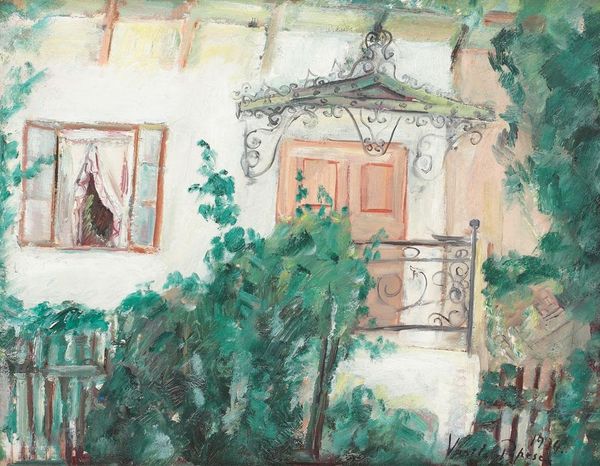 Edvard Munch made this painting, Garden in Taarbaek, with oil on canvas. It's a riot of greens, reds, and whites, laid down with a loose, almost impatient brush. You can see the process right there on the canvas, each stroke a little burst of energy. The pink of the wall in the foreground really grabs me. It’s not a sweet, gentle pink; it’s got some grit to it, mixed with white and maybe a touch of red, reflecting the light, but still somehow melancholic. And then there are these dark shadows and stark vertical lines breaking it up that suggest an almost oppressive feeling, so it’s not all roses, right? The brushwork around the trees is so gestural, it’s like he’s trying to capture not just what he sees, but how he *feels* about what he sees. Looking at this, I am reminded of Van Gogh, another artist who wasn’t afraid to lay his emotions bare on the canvas. Both of them teach us that art isn’t just about representation, it’s about a conversation, an emotional exchange, and embracing those messy, ambiguous feelings that make us human.