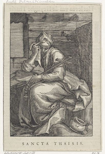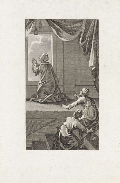 Editor: Here we have "Logica," an engraving from 1720 by Bernard Picart, currently residing in the Rijksmuseum. Looking at it, I am struck by the contrast between the figure who seems lost in thought and the cherubic figure focused on a game or puzzle. What visual elements stand out to you in this piece? Curator: Immediately, one is drawn to the compositional structure, organized with clarity and balance typical of academic art. The sharp, precise lines define forms and delineate space, which are critical to this print. Consider how the artist’s linear choices guide the viewer's eye through distinct spatial zones within a monochrome medium. Editor: So, it's more about the shapes and lines and how they interact than the story? Curator: Precisely. The success of “Logica” lies in its mastery of form. Examine how the folds of the drapery contrast with the smooth skin, yet maintain a cohesive visual language. Ask yourself, how do these textures contribute to the overall aesthetic? Editor: The textures are very consistent throughout the artwork, from the clothes to the cherub's curls. Curator: Notice too, the subtle yet purposeful use of varying line thickness to create depth. Does this linear treatment enhance the perceived volume, or does it flatten the scene, reminding us of the inherent two-dimensionality of printmaking? Editor: I can see how that works to give it depth despite the fact that it's all lines and shapes on paper. Curator: Indeed, by concentrating on the internal compositional strategies, we appreciate the inherent design sophistication that transcends the immediate subject of Logica. Editor: It's a fascinating exercise to analyze art in terms of its construction rather than its story. I've learned a great deal.