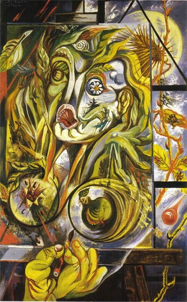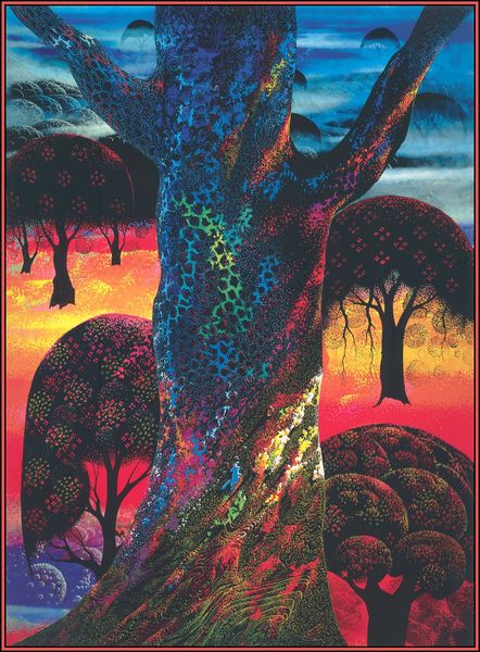 Ernst Fuchs made this crucifixion painting, well, we don’t know when, but it’s a wild ride of colour and line. Fuchs was part of the Vienna School of Fantastic Realism, and you can see that fantasy playing out here. The colours are so vibrant, right? That green and purple against the dark background, and the forms have a sinuous, almost slimy quality to them. Look at the torso of the figure on the cross, it's all ribs and hollows, painted with this incredible detail that makes it seem both real and totally alien. The surface is smooth, but there's so much going on within each form that you can almost feel the texture. This isn’t your typical crucifixion scene, but it definitely leaves a mark. It makes me think of some of Frida Kahlo's more surreal works, where she's blending personal pain with these larger-than-life symbols. Art is like that, it's a way of turning our insides out and making something new.
