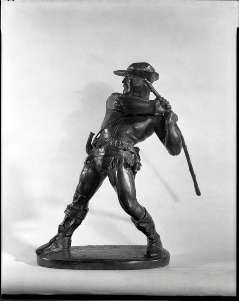 This bronze sculpture by Achille D'Orsi depicts a man burdened by a heavy load, his hands clasped tightly in front of him. We see a figure caught between duty and despair; the heavy bread on his back symbolizes not only physical labor but also the weight of his responsibilities. The clasped hands are particularly telling; this gesture, seen across centuries in both sacred and secular art, speaks to anxiety, prayer, and the hope for deliverance. Think of supplicants in medieval religious art, their hands similarly bound in fervent prayer. Here, however, the hands suggest more of a struggle. The gesture reverberates through history, embodying shared human experiences. The psychological impact of the image lies in its depiction of struggle and resilience. We see the man's bowed head, his forward lean, the visible strain. These elements combine to evoke empathy and a sense of shared human experience, reflecting the cyclical patterns of human suffering and endurance. It's a poignant reminder of how gestures persist and evolve, carrying emotional weight across time.