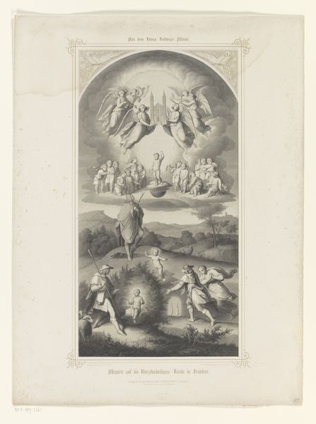 August Friedrich Spieß’s ‘Transfiguratie’, captures a pivotal biblical moment using engraving. Here, the dominant visual symbols are Christ's radiant figure, Moses and Elijah flanking him, and the awestruck disciples below. These elements, steeped in religious meaning, signify divine revelation and the bridge between the Old and New Testaments. Consider the gesture of upward reaching. It appears throughout art history, from antiquity’s depictions of ecstatic maenads to Renaissance portrayals of saints in divine communion. This persistent motif speaks to humanity's enduring quest for transcendence. The composition evokes a psychological response, inviting us to ponder our relationship with the divine, and the profound mysteries of faith. Such symbols are not static. They evolve, adapt, and resurface, their meanings shaped by cultural shifts and artistic interpretation. The Transfiguration, as Spieß presents it, becomes a link in this chain, a moment of intense spiritual emotion captured and passed down through time.