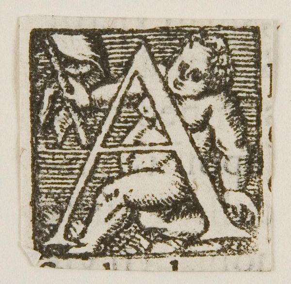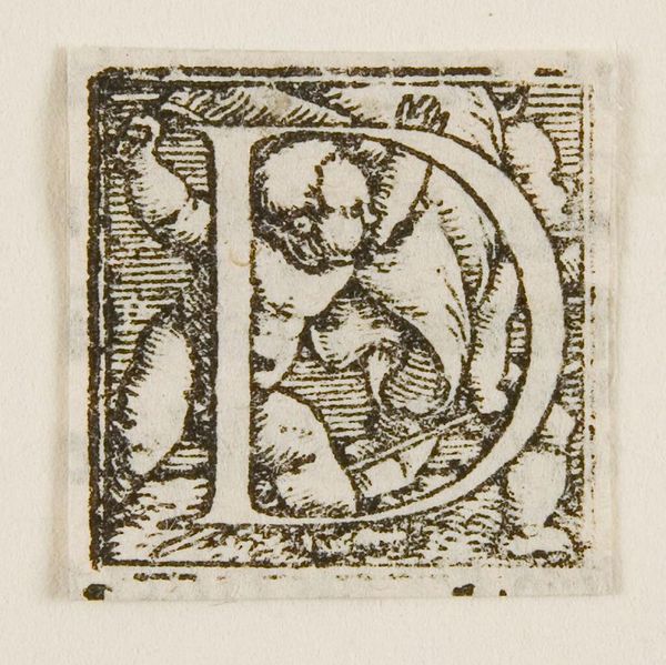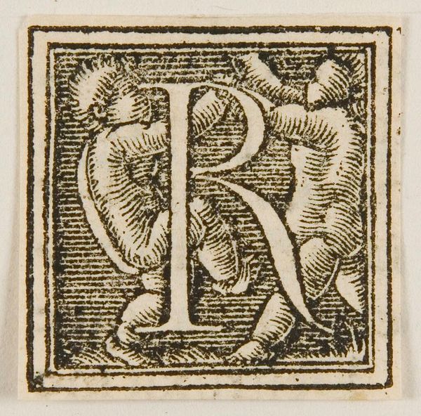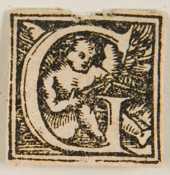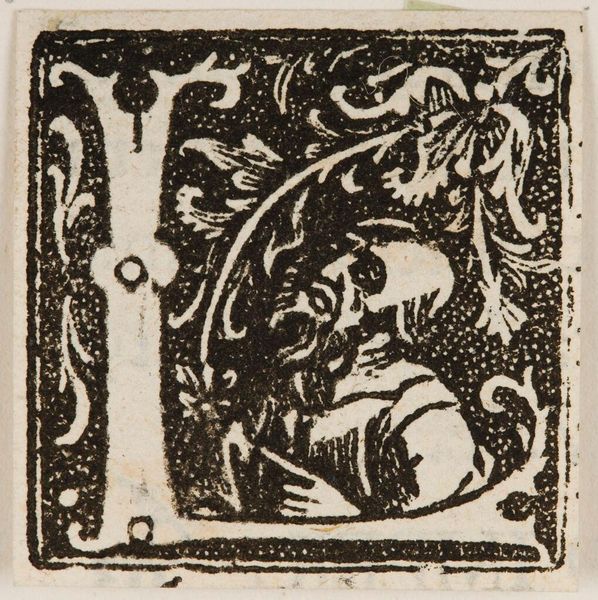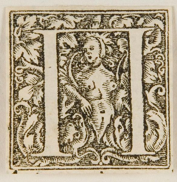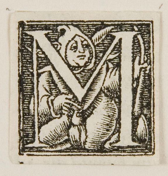 Editor: This is "Letter H," artist unknown, from the Harvard Art Museums. It's so small, and the figure within the letter seems to carry a weary weight. What symbols do you see at play in this tiny world? Curator: Notice how the figure, framed by the 'H,' holds a staff, a classic symbol of pilgrimage, authority, or even burden. The letterform itself confines the figure, suggesting a contained narrative or perhaps the limits of human experience. What emotions does that evoke in you? Editor: It makes me think about how even simple forms can carry complex stories. I hadn't considered the idea of confinement. Curator: Exactly. This humble initial becomes a vessel for cultural memory. Editor: I'll never look at a letter the same way again. Curator: Nor I.