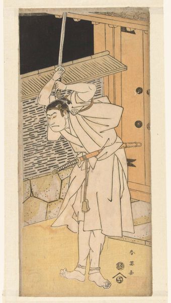Katsukawa Shun'ei created this woodblock print portraying the actor Sawamura Sojuro III as Oboshi Yuranosuke. Dominating the composition, the fan held by the actor carries a wealth of meaning. In Japanese culture, the fan is not merely an object of utility, but a symbol of status and power. Note the Kabuki actor's stern composure, which suggests inner turmoil, hidden by the fan. The fan itself is a cultural symbol. This reflects the actor's role as a cultural transmitter, embodying values of his society. The motif of a performer hiding behind a mask or prop is ancient: recall the Greek theatre, where masks amplified emotions, or commedia dell'arte, where characters concealed true feelings. The performance, much like life, is a stage where these roles evolve through time. This image encapsulates the cyclical nature of human expression and the enduring power of cultural symbols.