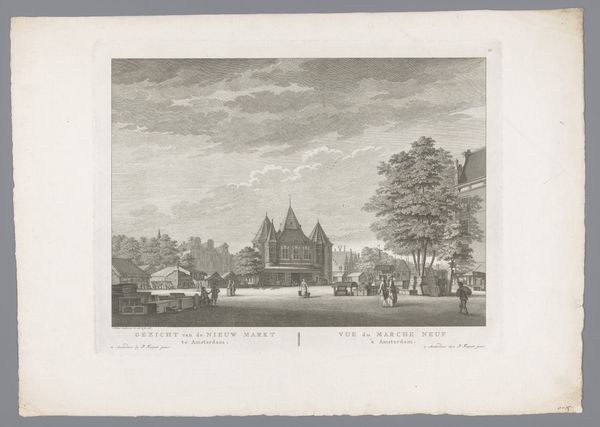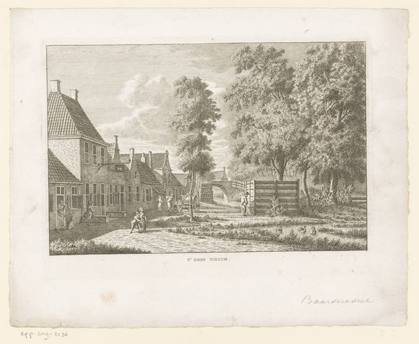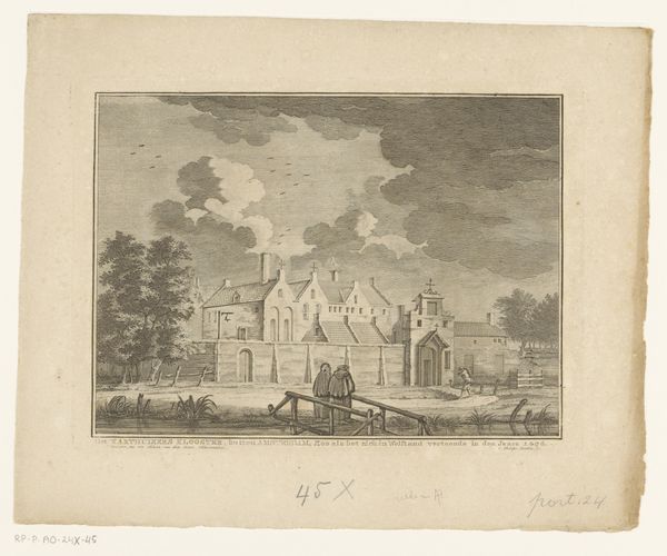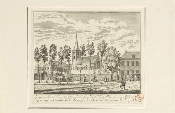 Editor: So, here we have Daniël Stopendaal's 1719 engraving, "Buitenplaats Rupelmonde," currently residing in the Rijksmuseum. It’s incredibly detailed! All those tiny lines…it gives it a sort of peaceful, almost quaint feeling. What jumps out at you when you look at this piece? Curator: Quaint is a lovely word for it. For me, it's the balance Stopendaal strikes between the man-made structures, almost toys clinging to the river's edge, and the untamed sky. Look at the clouds gathering – doesn't it hint at the insignificance of our grand designs, however charming? There is a contrast here between our domestic, enclosed spaces and the open infinity that I think invites introspection, a musing on temporality, what will endure? Editor: That's interesting, the idea of "insignificance." I saw more of a harmony... the architecture complementing the natural landscape. Are we perhaps seeing the values of the Baroque period reflected here – a need to tame and order nature? Curator: Precisely! That urge to organize, to present an ideal... But doesn’t the artist give it a gentle ribbing, suggesting nature ultimately has the last word? Those dark, churning clouds say, "Hold on, folks." Perhaps Stopendaal is inviting us to enjoy our small triumphs while acknowledging something bigger, something beyond our grasp, just around the corner. Does that resonate with your modern sensibilities at all? Editor: Definitely. There's something humbling about it. I appreciate seeing both the human effort and nature's constant presence, which your comments illuminated for me! Curator: Wonderful! And isn't that the delight of art? Multiple echoes down different hallways... something for everyone. It gives pause for reflection on a conversation and allows new meaning to take root!