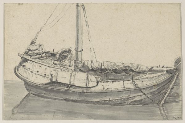 John Linnell sketched "A Rowing Boat at Twickenham" in pencil, capturing a scene that reflects the leisure and labor intertwined along the Thames. Linnell, who moved within intellectual circles that included William Blake, held complex views on industry versus nature. This drawing offers a glimpse into the lives of working-class individuals who operated these boats, often overlooked in favor of romanticized landscapes. The detailed rendering of the boat and the tools speaks to the culture of labor and the personal connection between workers and their means of livelihood. How did the working class feel, knowing their efforts would be appreciated by landscape painters such as Linnell? Consider the subtle politics inherent in landscape art of this period, where representations of nature often masked the social realities of the time. The drawing then, becomes more than a simple study; it’s an artifact of social and economic relationships.