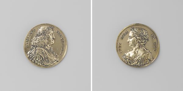 This commemorative coin, crafted by Moses de Vries, serves as a material record of the death of Willem II, King of the Netherlands. Look closely at the coin's composition. The circular form and the relief of Willem II create a visual tension between flatness and depth. The face of Willem II dominates our perception, and there is a textural contrast between the smooth, idealized profile and the rougher inscription around the edge. Semiotically, the coin is charged with meaning. The portrait of Willem II signifies power, leadership, and continuity. While on the reverse, a visual vocabulary conveys a sense of mourning and remembrance. Here, the objects symbolize loss and the ephemeral nature of earthly power. Consider how the coin, with its golden hue, functions as a symbolic object. It asks us to think about the relationship between political power, material culture, and historical memory. It's a potent reminder of how artifacts can embody cultural values, challenge our understanding of history, and invite multiple interpretations.