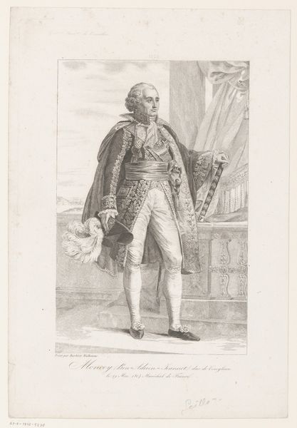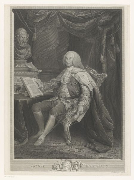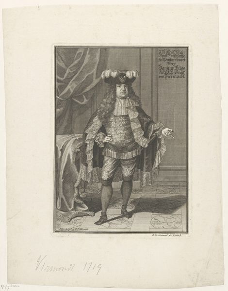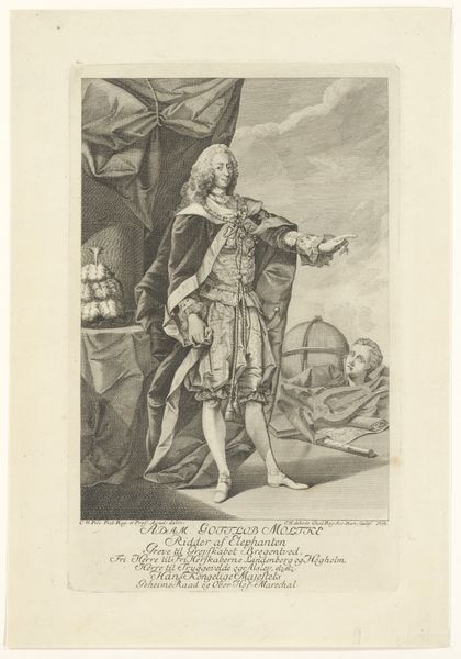 Jean Colin created this portrait of Stanislaus Leszczyński as an engraving sometime between 1750 and 1770. It offers us a glimpse into the visual strategies of power and representation during the 18th century. Stanislaus Leszczyński, a Polish king and Duke of Lorraine, stands here as a figure of authority, his elaborate attire and dignified posture speaking to his royal status. But what does it mean to portray a king in this way? Colin’s rendering of Leszczyński is not merely a depiction; it is a constructed image meant to project power, legitimacy, and cultural sophistication. Consider the role of fashion in constructing identity. Leszczyński's clothing, the wig, the ornamentation, everything speaks to the visual codes of aristocracy. Colin’s portrait invites us to consider the complex interplay between identity, representation, and the cultural values of the time. How do such images shape our understanding of historical figures, and what do they tell us about the societies that produced them?
