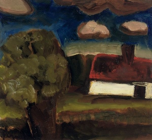 Constant Permeke painted “Ferme en Flandres,” depicting a Flemish farm, most likely sometime in the first half of the 20th century. This was a period marked by significant social and political upheaval, particularly in Europe, with the two World Wars deeply affecting the lives and perspectives of artists. Permeke was a Flemish expressionist, and his work often focused on the lives of rural workers. His commitment to representing the dignity of the working class is evident here, although, his interpretation of rural life wasn’t simply celebratory; his paintings convey the harshness and isolation of their existence. The somber tones and turbulent brushstrokes evoke a sense of struggle against the elements. It avoids romanticizing rural life and offers a view of the daily lives of ordinary people, marked by resilience and connection to the land. Permeke said he wanted to "paint the elemental power of man and earth." In its stark simplicity, “Ferme en Flandres” is more than a landscape; it's a reflection on labor, resilience, and the ties that bind people to their environment.