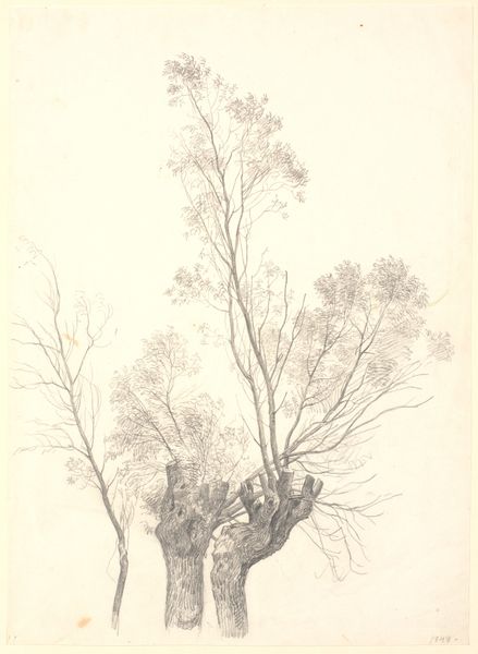 Dankvart Dreyer rendered this beech tree with pencil on paper, capturing more than just its physical form. The tree, a common motif across cultures, has long been a symbol of life, growth, and interconnectedness. In ancient mythologies, trees were often seen as sacred, connecting the earthly and the divine. Consider the "Tree of Life", a motif that appears in various forms from the Norse Yggdrasil to the biblical tree in the Garden of Eden. Here, the solitary beech embodies a sense of resilience and endurance. The tree stands tall, its branches reaching towards the sky, a silent witness to the passage of time. Its presence evokes a deep, subconscious recognition of nature's enduring power, engaging us on a level that transcends mere visual appreciation. The cyclical nature of the tree, with its seasonal changes and perennial return, mirrors the non-linear progression of cultural symbols, constantly resurfacing and evolving through history.