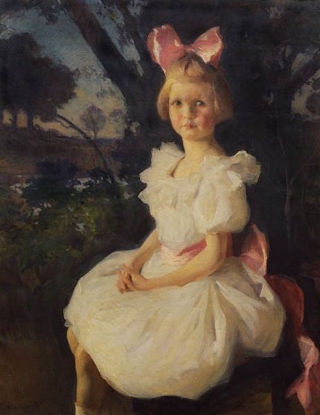Kimon Loghi created "The White Knot" using oil paint on canvas, a process with a long and loaded history. Loghi would have manipulated the oil paint to capture the texture of skin and fabric, building up layers to give a sense of depth and volume. The smooth consistency of the paint allowed him to blend colours and create soft transitions, especially in the girl's face. The brushstrokes are visible, adding a tactile quality to the surface. Oil painting was closely tied to the rise of capitalism. The production of pigments and the canvas relied on global trade networks and industrial processes. Portraits like this were often commissioned by wealthy patrons, and the very act of painting became a way of asserting status. Considering the materials, the making process, and social context, we begin to understand the historical weight embedded in the artwork.