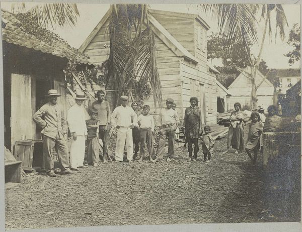 Hendrik Doijer made this photograph, titled "Dorpelingen," at an unknown date. The image depicts a group of villagers posed in front of simple wooden structures. Looking closely, the composition reveals a stark contrast in attire, dividing the group socially. On one side, several figures are dressed in what appears to be European-style clothing, while the others wear simpler, more traditional garments. This contrast is a visual code that speaks to the colonial dynamics in the Dutch East Indies, now Indonesia, where Doijer worked. The photograph hints at the complex social hierarchy and cultural imposition characteristic of the region at the time. To truly understand this photograph, one would need to delve into the archives of colonial history, examining photographs and documents related to the Dutch East Indies. It's through this kind of contextual research that we can better understand not only the image but also the social and institutional frameworks that shaped its creation and meaning.