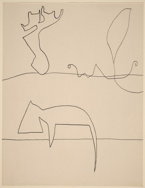 Editor: Here we have Sylvia Goldsmith's "Five sketches of wire figures." It looks like ink on paper. It's so simple, almost like doodles, yet they have a striking presence. What do you make of this piece? Curator: The rawness of the materials and the immediacy of the sketch highlight the labor behind artistic creation. Think of the physical act of drawing, the pressure applied to the pen, the choices made about each line. Editor: So you're focusing on the physical process and the choices made by the artist? Curator: Precisely! How does the artist's manipulation of a simple material like ink elevate these sketches beyond mere doodles? The material constraints shape the art itself. Editor: That's a great point. I hadn't thought about the limitations and how that pushed the artist. Curator: Considering the means of production changes our perspective, doesn't it? Editor: Definitely. I'll never look at a simple sketch the same way again!