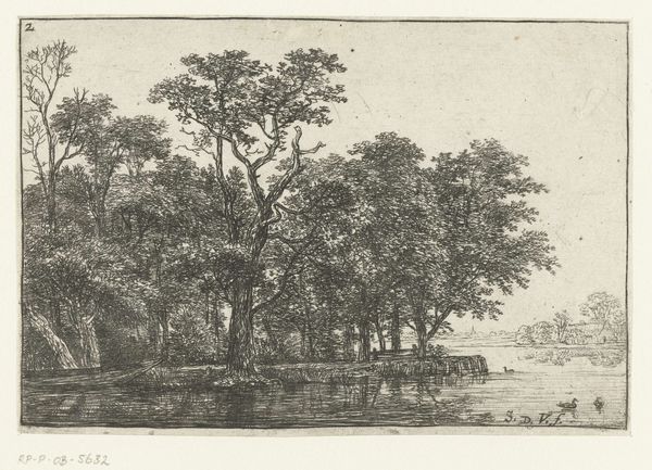 Curator: Pieter van Cranenburgh gifted us this intimate landscape study in 1814, titled "Riviergezicht," rendered meticulously with pencil. What are your first thoughts? Editor: It has a rather melancholic feel, doesn't it? The muted tones and soft focus give it a hazy, dreamlike quality. The scene almost feels caught in a fleeting moment, a memory perhaps. Curator: That sense of longing resonates with the socio-political climate of the Netherlands at the time, freshly liberated from Napoleonic rule but grappling with a lost global power status. Landscape art was increasingly viewed as a vessel for national identity. Editor: Absolutely. The river, a symbol of passage and transition, could signify a hope for renewal and recovery, or the slow acceptance of decline. The dense cluster of trees on the left creates a strong visual weight, like a secure rootedness. But then, there's this stark, empty sky. It does unbalance the piece—a void, perhaps representative of an uncertain future? Curator: Indeed. Consider the formal qualities, though. The artist’s precise, almost scientific, approach to depicting natural details aligned with an Enlightenment impulse to catalogue and understand the world. This precision coexists with a palpable emotional current. Editor: Precisely! This detailed depiction of the river and the trees suggests not only familiarity, but also intimate understanding. There is almost a reverence. Water is ever changing and purifying. But this landing, it feels less like a hopeful invitation to come ashore and more like a decaying point of access. Curator: Interesting point. The composition is fairly conventional but that decaying point of access speaks to the vulnerability of Dutch national identity and economy. Though this study may seem simply aesthetic on the surface, there are deeper layers to interpret. Editor: I agree. These symbols whisper of resilience and potential—even within loss—making you consider a deeper understanding of cultural experience at a pivotal period. Curator: Thank you; that enriches my appreciation for what may, at first glance, appear to be a simple rendering of nature. Editor: Agreed. I’ll certainly ponder the artist's intentions as I return to the drawing now.