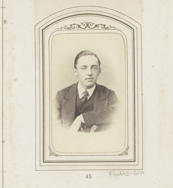 Editor: Here we have a photograph, "Portret van een man met baard en bril", or "Portrait of a man with beard and glasses," dating roughly from 1863 to 1875, attributed to G. and R. Lavis. The muted tones give it an antique feel, and the subject looks quite scholarly. What do you see when you look at this piece? Curator: I'm struck by the photographic process itself. Think about the material conditions required to create this image back then: the specific chemistry, the long exposure times, the heavy equipment. Photography wasn't ubiquitous; it was a deliberate act involving skilled labor. How did this impact the subject's pose, their choice of clothing, the very presentation of self? Editor: That’s a great point. The framing, even the slight blurriness, emphasizes the handcrafted nature of early photography. It’s less about capturing a fleeting moment and more about constructing an image. Curator: Exactly. The creation of such an image was labour-intensive. It's not merely a snapshot, but a commodity produced within a particular social and economic context. And who were G. and R. Lavis? Understanding their studio practices and clientele tells us about the market for portraiture at that time, and where the work sits within broader historical contexts. How do we think about the consumption and exchange of photographic portraiture? Editor: It almost feels like a collaboration between the subject and the photographer. The man’s serious expression seems to hint at the gravity of the process. Curator: And what does that say about the sitter's class position, and his understanding of this technology, considering the portrait itself as both document and commodity? Editor: This really opens my eyes to thinking about art beyond just what is depicted. Considering the material processes involved is very helpful! Curator: Indeed. By looking at the materials and social contexts, we move beyond just aesthetic appreciation and towards a richer, more critical understanding.