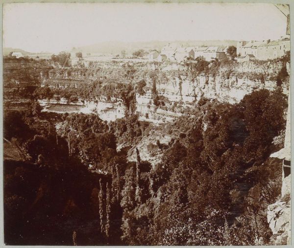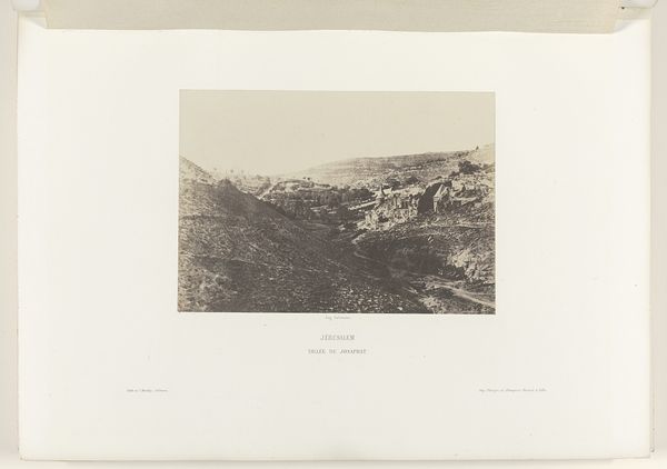 Editor: This is Auguste Salzmann’s photograph, "Jérusalem, Vallée de Hinnom, Détails du flanc droit, 1," created between 1854 and 1859. It’s a daguerreotype, giving it that unique, almost ethereal quality. It reminds me of an ancient site, still standing, but slowly being reclaimed by nature. What strikes you when you look at this image? Curator: The photograph’s strength lies in its precise articulation of form and texture. Observe how the sharp focus renders each stone and shrub with almost hyper-realistic detail. Salzmann employs a meticulous arrangement of light and shadow, structuring the composition into distinct planes receding into the distance. Do you notice how the eye is led upwards, following the diagonal thrust of the hillside? Editor: I do. It’s a clever way to guide the viewer's gaze. It almost feels like a deliberate compositional choice. Curator: Indeed. Note also the contrast between the solid, geometric forms of the carved structures and the organic, chaotic growth of vegetation. This juxtaposition creates a visual tension, underscoring the interplay between human intervention and the relentless forces of nature. Consider, too, the monochrome palette. The absence of color invites us to concentrate on the tonal variations and the nuanced play of light across the surface. How does that limitation affect your interpretation? Editor: It emphasizes the form and texture, almost like a sculptural study. Without color, the photograph seems more abstract, focusing on shapes and patterns. I'd never considered a photograph in quite that way before, especially one of a real location. Curator: Precisely. It reveals how the inherent structure and meticulous design elevate this photograph beyond mere documentation. It allows us to see the scene filtered through a lens that’s more than observational. Editor: I’m walking away appreciating photography from the 1850’s a lot more. Thank you for the fresh insight!