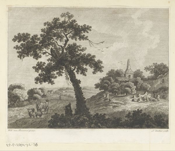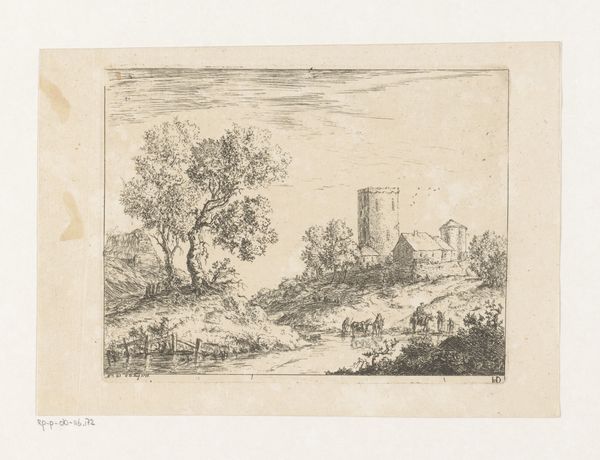 Adam Perelle created this coastal scene with boats near a tower, an etching, during the latter half of the 17th century. At first glance, the composition is defined by a contrast between the detailed foreground, filled with figures and foliage, and the expansive, more subtly rendered sea and sky. Notice how the artist uses line and shading to create depth, drawing our eye from the left-hand tree across the water to the distant horizon. Perelle employs a structural balance, framing the architectural structure with natural elements that provide a sense of enclosure. The strategic placement of boats and human figures serves not only to animate the scene but also to establish scale and perspective. By subtly modulating light and shadow, Perelle creates a visual rhythm that invites the viewer to explore the scene gradually. Consider how the artist destabilizes fixed meanings and categories, and how the interplay between these elements invites the viewer to contemplate the relationship between human activity and the natural world. This etching functions aesthetically and as part of a larger cultural discourse, providing us with a window into how the 17th century perceived its place within a broader environmental and architectural context.
