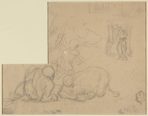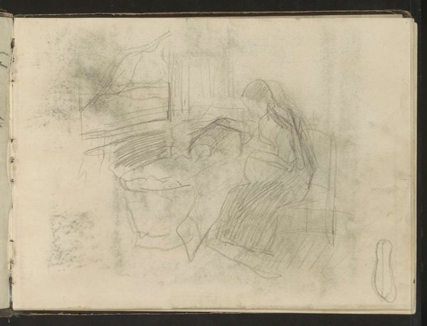 Editor: We’re looking at "Zittend vrouwelijk halfnaakt," or "Seated Female Nude," an etching by George Hendrik Breitner, likely from around 1891-1892. There's an unfinished quality to the linework, and a sense of intimacy, perhaps. What do you notice in terms of its composition? Curator: Immediately, I’m drawn to the angularity in Breitner’s line. Notice how he uses very deliberate, almost geometric, strokes to define the contours of the figure and the surrounding drapery. This contrasts intriguingly with the more fluid, suggestive lines used to imply shadow and volume. The lack of precise definition pushes this piece towards abstraction. Where does your eye land first and why? Editor: I think my eye is drawn to the subject's mid-torso because the artist has added cross-hatching there, in comparison to her other body parts that feature thinner line weights, or single strokes. The addition of shading in the waist area communicates some depth. Does this treatment guide us through the piece? Curator: Precisely. The density of the etched lines serves as a visual anchor. But also observe the strategic emptiness—the negative space—around the figure. How does that absence of detail contribute to the overall reading of the composition? Is the model in focus or are our eyes navigating between her image, and everything else on the picture plane? Editor: It feels almost like she's emerging from a fog or a half-formed thought. So the negative space then pushes this beyond a simple study of the nude form. It becomes more about a moment, a feeling. It makes the piece very engaging. Curator: I concur. The unfinished nature invites a higher degree of viewer participation. It is the orchestration of these graphic elements, lines and absences, which elevates the work. Editor: I see, I've never considered an artwork's visual anchor like that. Thanks for your insights. Curator: My pleasure, indeed. Looking closely is where the magic happens.