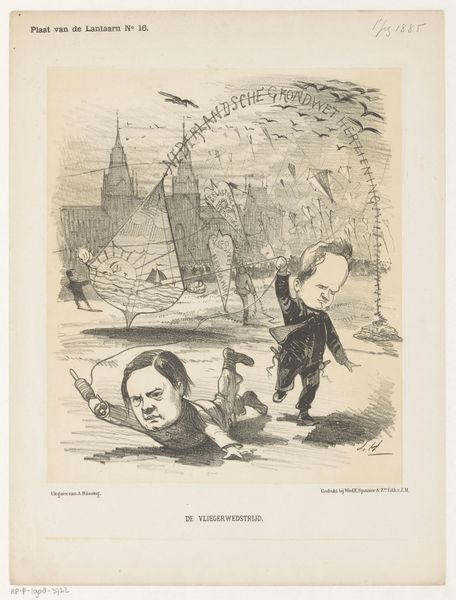Editor: This lithograph by Honoré Daumier, titled "The Grenelle Wells," from 1842, depicts two figures observing the wells. I find it fascinating how Daumier captures a sense of public pride or perhaps even self-importance. How would you interpret this work? Curator: Well, understanding the historical context is key here. Daumier often used his art as social commentary. The Grenelle Wells were a significant engineering project for providing clean water to Paris. Look at the central figures—likely Mr. Mulot and his son, key figures in the project. How do you interpret their posture and placement within the scene? Editor: They seem very pleased with themselves, standing tall while those behind them look on, almost like spectators. I sense an element of satire there. Curator: Precisely! Daumier critiques the self-congratulatory nature of the elite involved in these public projects. He is commenting on the role of civic improvements as sources of personal and class-based prestige. Consider the title, part of "Caricatures Du Jour"; Daumier's prints were made for mass consumption, and directly spoke to political and social themes of the time. What impact do you think this kind of satirical portrayal had on the public’s perception of these figures and the well project? Editor: It probably fostered skepticism and questioned the motives of those in power, while still acknowledging the project's achievement of providing fresh water. Curator: Exactly. Art like this can shape public opinion and hold institutions accountable. It made me appreciate the role of satire in visual commentary in shaping social discourse. Editor: This has opened my eyes to how art can be intertwined with power dynamics. Thanks for your perspective.