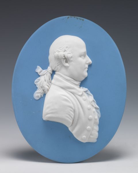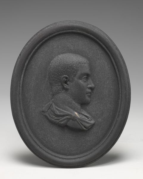 Editor: This "Medallion," created in the 18th century by Josiah Wedgwood, features a relief sculpture in ceramic. It strikes me as a very stoic, almost severe portrait. How do you see it, in the context of its time? Curator: It’s a fascinating object because it speaks volumes about the public role of art in the 18th century. Wedgwood was masterful in tapping into the Neoclassical movement, which was not just about aesthetics, but about associating with the perceived virtues of the Roman Republic: civic duty, reason, and stoicism, as you noted. This portrait is a calculated exercise in image-making, contributing to a visual culture steeped in classical ideals that influential people sought to embody. Does the material, ceramic, tell us anything about the audiences that consumed this piece? Editor: It’s interesting that you bring that up! Ceramic makes it feel less precious, almost more…democratic? Like it’s meant for broader distribution, not just the elite. Curator: Precisely. Wedgwood industrialised ceramic production and marketed these medallions widely. He wasn't just selling art; he was selling status, aspirations and membership within a certain cultural and political milieu. It also encouraged a visual rhetoric: Who could *afford* to have a sculptural portrait reproduced? Who had enough societal impact? What impact do you think the distribution of the portraits had on cultural conversations? Editor: It almost feels like early propaganda, influencing people to consider what leaders should value or look like. And who deserves to be memorialized. Curator: Exactly. Wedgwood's "Medallion" is more than just decorative art; it’s a carefully crafted political and social statement, mass-produced and circulated. Editor: That gives me a lot to think about in terms of art as a shaper of societal values and image! Curator: Absolutely, it underscores how art, even in seemingly simple forms, participates in shaping public perceptions and power dynamics.