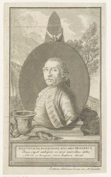Curator: Let's discuss Johannes Zacharias Simon Prey’s "Portret van Gerard van Nijmegen," a colored-pencil drawing from 1786, currently held in the Rijksmuseum. Editor: My immediate impression is one of calm and self-possession. The subject’s posture, the soft, muted palette—it all speaks of a composed artistic spirit at work. Curator: Indeed. This piece reflects the rising social status of artists during the late 18th century. Portraits were becoming less about aristocratic patronage and more about celebrating individual achievement. Nijmegen here is not depicted in a grand, symbolic setting, but in his own studio, surrounded by the tools of his trade. It's a subtle form of self-promotion, tied to broader cultural shifts that validated artistic merit. Editor: You’re right, it’s carefully constructed. The triangular composition subtly frames his figure against the easel and landscape, giving a certain visual prominence. Notice, too, the textural contrast between the smooth skin tones achieved with the pencil and the coarser, almost grainy appearance of the canvas. It directs the viewer's gaze, highlighting his face as the center of artistry. Curator: And this drawing serves as a window into the artist’s own status. Academic art of the time heavily emphasized realism, aspiring toward accurate representation while integrating the sitter into refined environments. Prey seems keen to situate Nijmegen within the discourse of high culture, even including the bust for an almost direct allusion to the antique past. Editor: From a formal perspective, the artist also successfully employs light and shadow to define form without being overly dramatic, resulting in a gentle, accessible quality. The gaze that connects with the viewer… Curator: All for making the sitter approachable, and it worked, I imagine! But ultimately this is also a savvy piece of social positioning, presenting an artist in the Neoclassical era that values skill and refinement. Editor: Absolutely. Through its carefully arranged details, "Portret van Gerard van Nijmegen" provides a fascinating study of a person in the midst of his moment, and a movement as it reflects this vision of its members. Curator: Agreed. It’s a testament to art’s intersection with identity and ambition, framed by historical shifts. Thank you, always, for new dimensions, to explore artworks from.