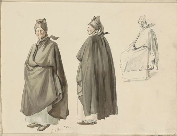 Eugène Delacroix sketched these three figures in pencil and watercolor, likely in the 1830s. These are studies of women from North Africa, probably made during or after Delacroix's trip to Morocco in 1832. France had begun its colonial expansion into North Africa, and this artwork reflects a broader European interest in the region. The loose sketch-like quality is important here. Delacroix isn't trying to give us a fully detailed, realistic representation of these women. Instead, he focuses on capturing their clothing and overall appearance. The sketch invites the viewer to imagine them and, perhaps, exoticize them. He is not necessarily presenting a critical vision of colonialism, but his fascination with the visual culture of North Africa helped to expand the repertory of images available to European viewers. To understand this work fully, we need to look at travel writing, political documents, and other images from the period to understand how North Africa was perceived in Europe.