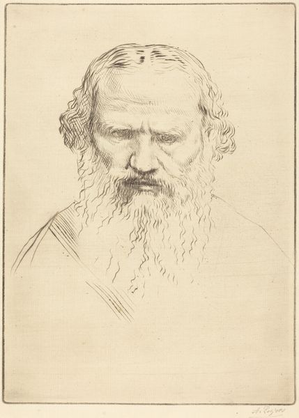 Alphonse Legros made this Study of a Head using red chalk on paper. It evokes a sense of classical antiquity, an interest that surged through 19th-century Europe, influencing art academies and shaping public taste. The drawing's ochre tones and the subject’s serene expression recall Renaissance portraiture, connecting Legros to a lineage of artistic masters and their institutional authority. We can see the image creates meaning through the careful use of line and shadow, and the pose of the figure that brings to mind classical sculpture. Legros, a French artist who later taught at the Slade School in London, was part of a broader European movement to revive classical ideals in art. Understanding Legros’ work requires us to look at not only the artist himself, but also the institutional structures that promoted certain styles and subjects. Art historical resources like exhibition catalogs and academic records, help us to understand the social and institutional context that shaped Alphonse Legros’ artistic production.