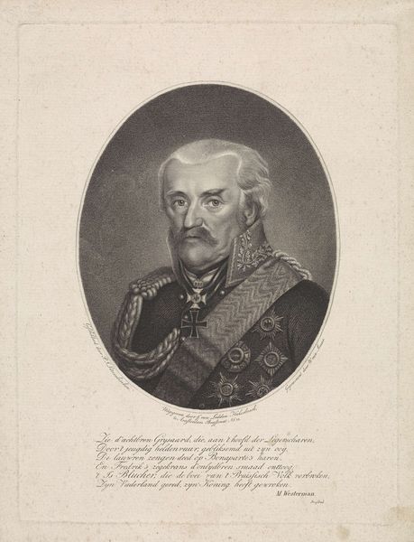 This is Johannes Cornelis Mertens’ portrait of Admiral Jan Willem de Winter. De Winter lived in a tumultuous era marked by revolution and shifting political landscapes. This portrait captures the rigid formality expected of leaders, yet hints at the complexities beneath. It reflects the weight of duty and the performance of power, especially for a man who navigated the intricacies of Dutch society during the Batavian Republic. De Winter rose in prominence despite the political upheaval, suggesting a capacity to adapt and lead through changing times. The engraving invites reflection on how individuals shape, and are shaped by, their historical moments. Consider how the portrait serves not only as a record but also as an interpretation of identity, shaped by both personal characteristics and broader socio-political forces.