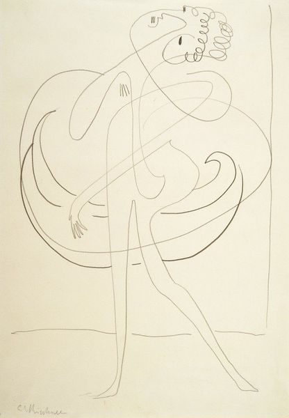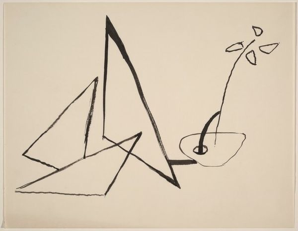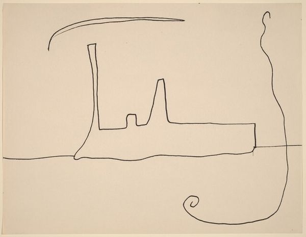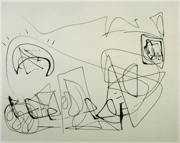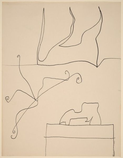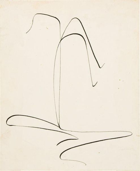 This untitled work is a drawing by William Baziotes, created with ink on paper. There’s something so immediate about the simple black lines against the warm, creamy paper. It's like watching the artist think on the page, each line a deliberate, but playful decision. Look at the top shape, almost like a tree or a strange antler. It's not quite anything real, but it feels familiar, doesn't it? Baziotes wasn't trying to copy the world; he was inventing his own. The drawing has a lightness of touch, a quickness that feels both casual and assured. It reminds me of some of Joan Miró’s dreamlike figures or maybe even a Cy Twombly doodle, but with its own distinct personality. Ultimately, this drawing captures a moment of pure imagination. It's a reminder that art doesn't always need to be serious or complicated. Sometimes, it's just about letting your mind wander and seeing what comes out on the page.