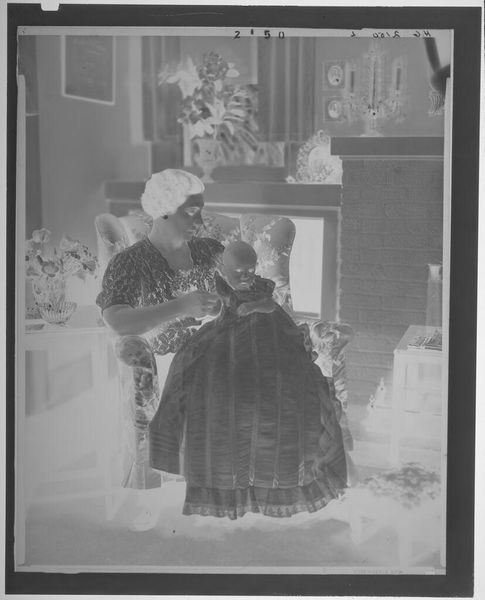 Paul Gittings made this gelatin silver print of a woman seated in an armchair with a baby on her lap. While seemingly a simple family portrait, it actually raises questions about the politics of imagery. The absence of a title and date complicates its interpretation, leaving us to consider the possible social conditions that shaped its production. The image may have been commissioned, perhaps reflecting a certain level of social standing, given the presence of middle class furniture. It certainly hints at the cultural norms around motherhood, family, and the role of women in society. To understand this image better, one would have to delve into photographic archives and study family portraiture of the time, to look at Gittings’s work, as well as the socio-economic context, class, and gender roles. The meaning of art is contingent on social and institutional context, and it’s in the historian’s role to highlight these important elements.